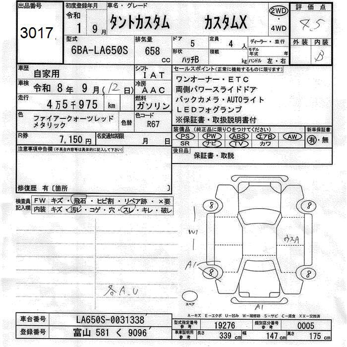 DAIHATSU TANTO CUSTOM X - лот 3017