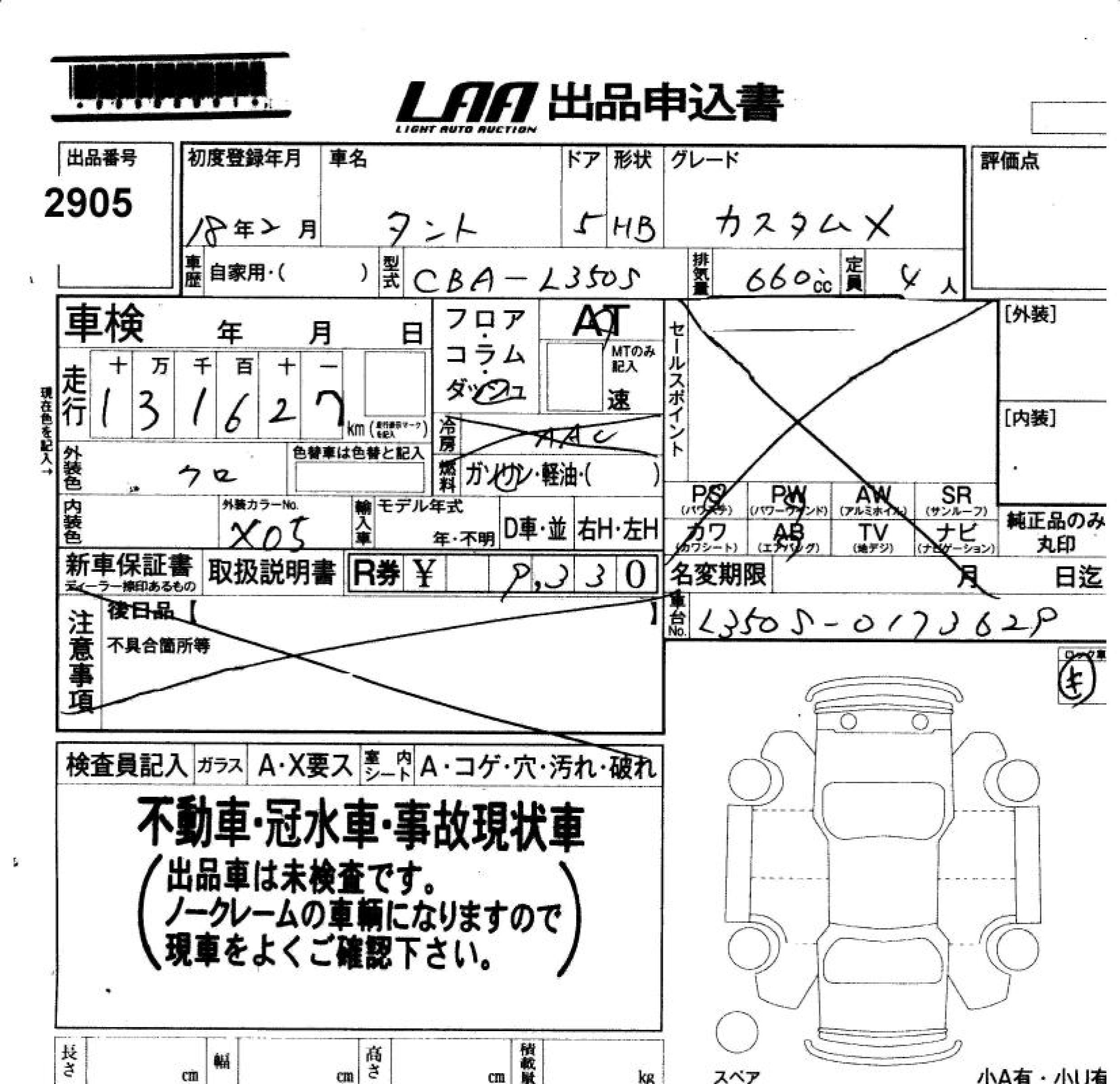 DAIHATSU TANTO CUSTOM X - лот 2905