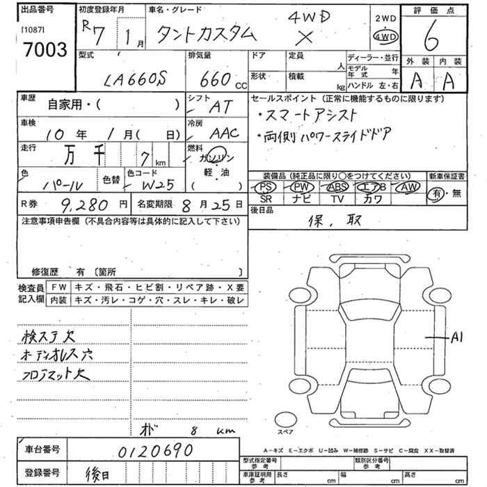 DAIHATSU TANTO 4WD CUSTOM X - лот 7003