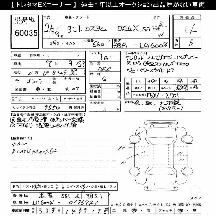 DAIHATSU TANTO CUSTOM X SA - лот 60035