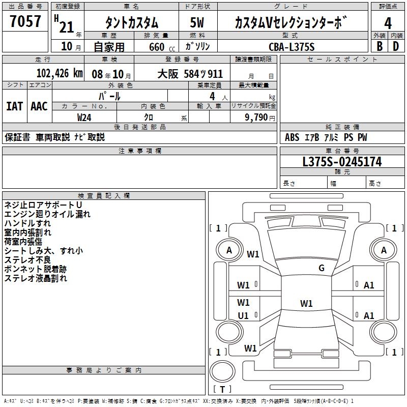 DAIHATSU TANTO CUSTOM V SELECTION TURBO - лот 7057