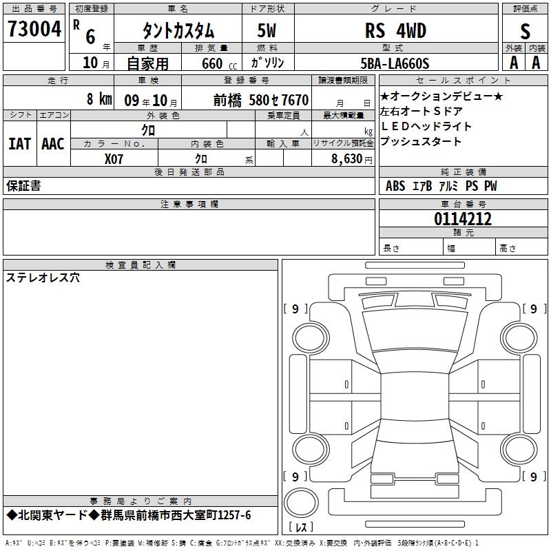 DAIHATSU TANTO RS 4WD - лот 73004
