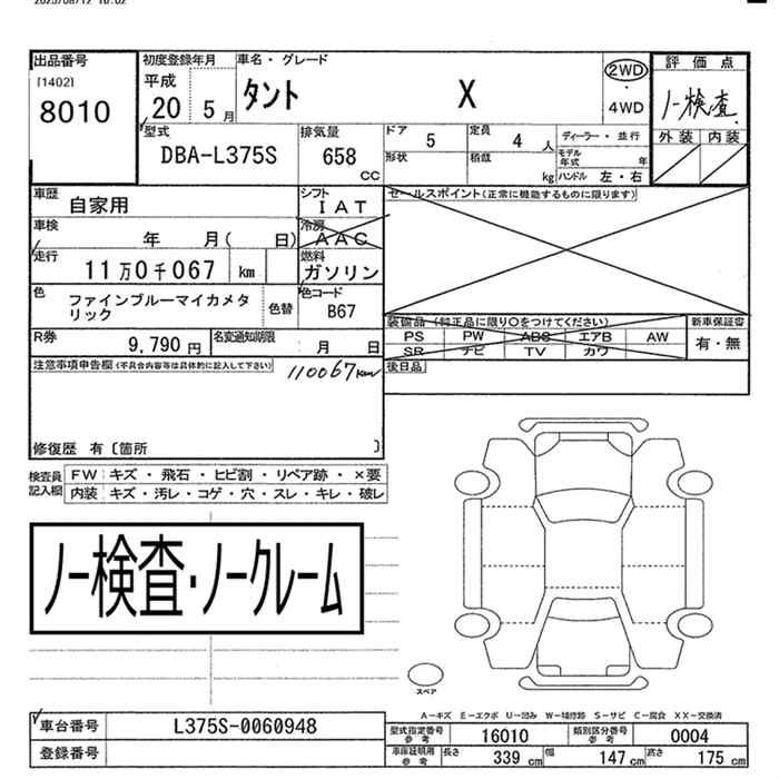 DAIHATSU TANTO X 2WD - лот 8010