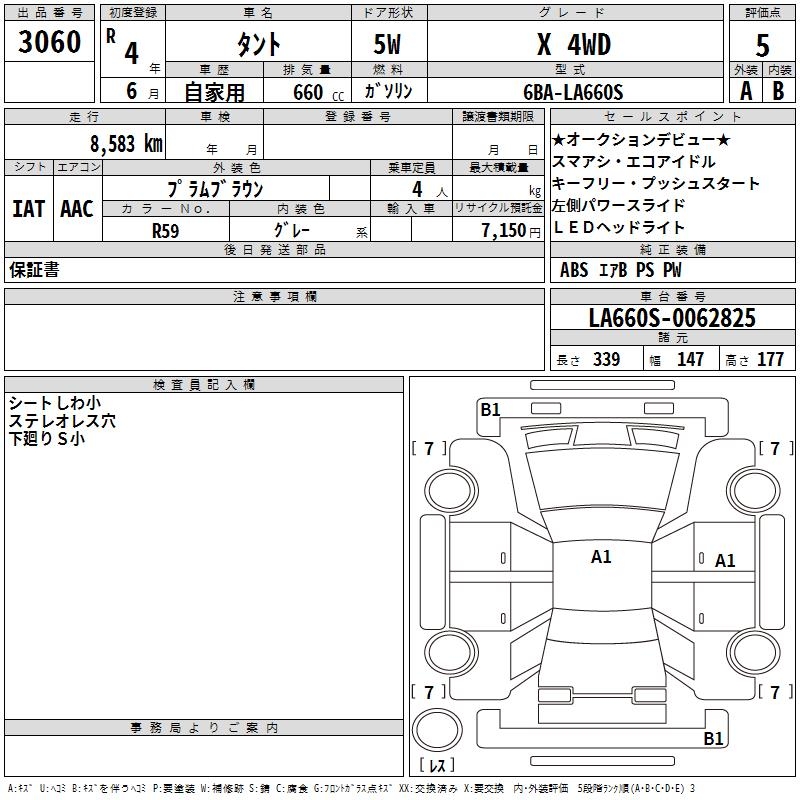 DAIHATSU TANTO X 4WD - лот 3060