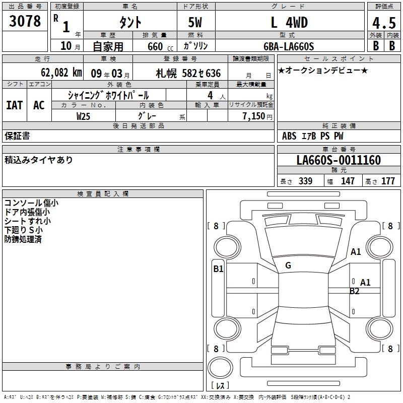 DAIHATSU TANTO L 4WD - лот 3078