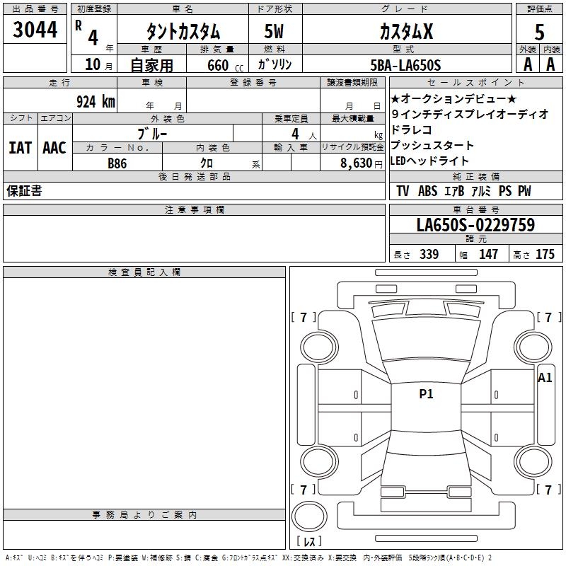 DAIHATSU TANTO CUSTOM X - лот 3044