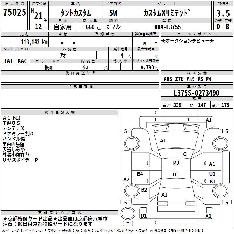 DAIHATSU TANTO CUSTOM X LIMITED - лот 75025
