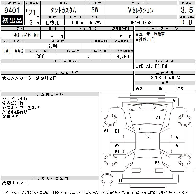 DAIHATSU TANTO V SELECTION - лот 9401