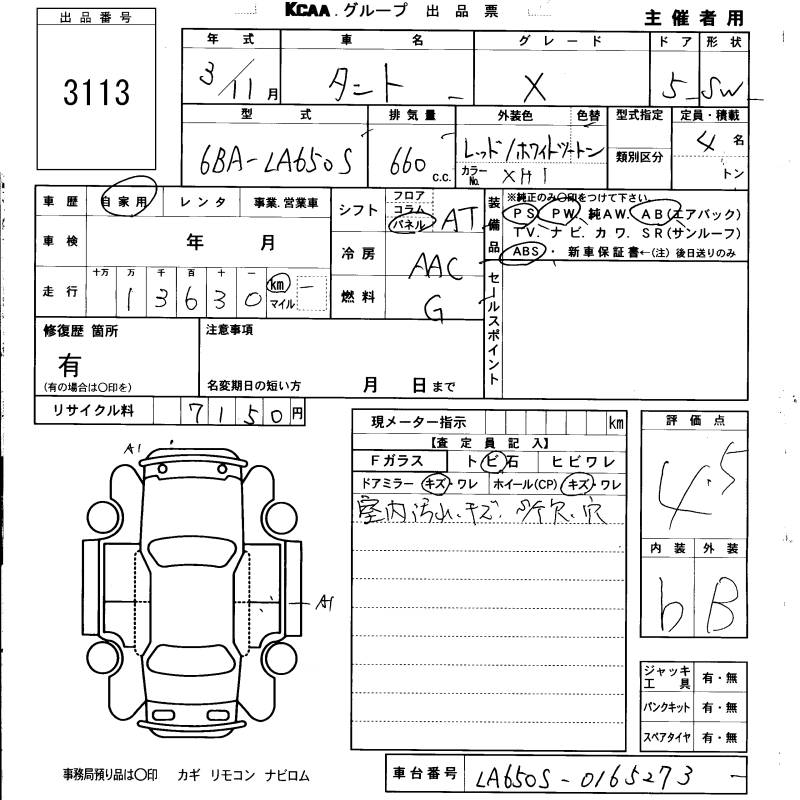 DAIHATSU TANTO X - лот 3113