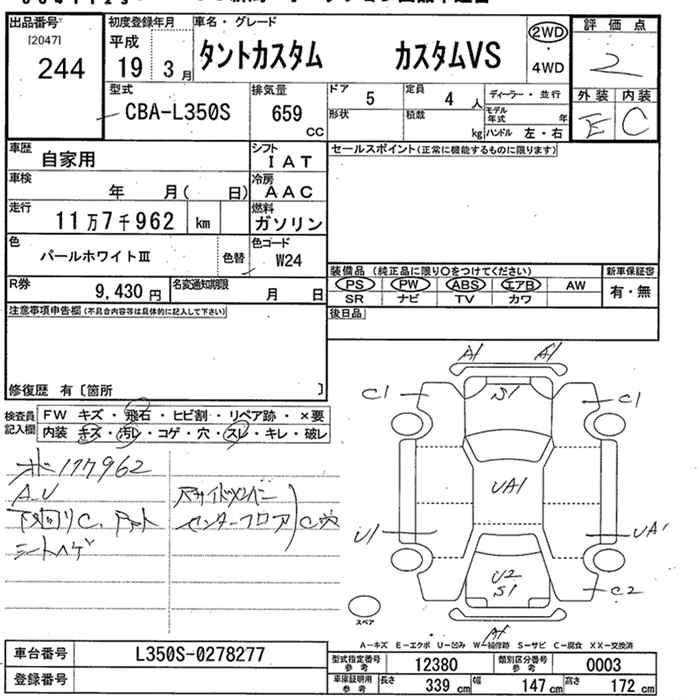 DAIHATSU TANTO CUSTOM VS - лот 244