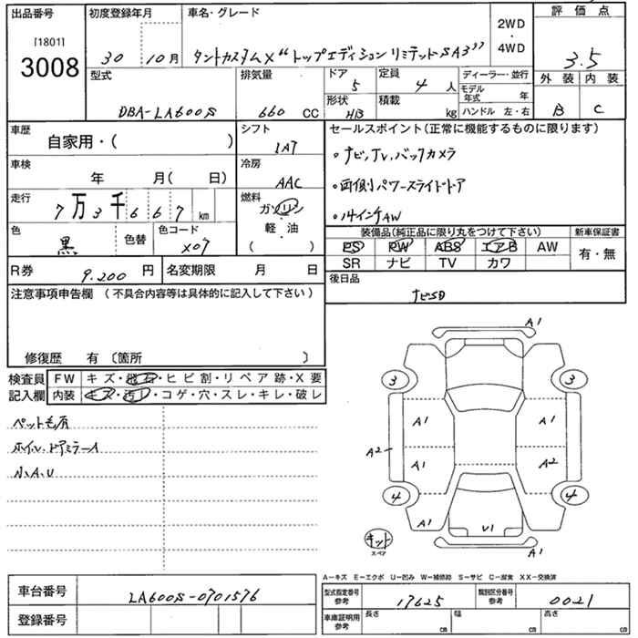 DAIHATSU TANTO CUSTOM X TOP EDITION LTD SA3 - лот 3008