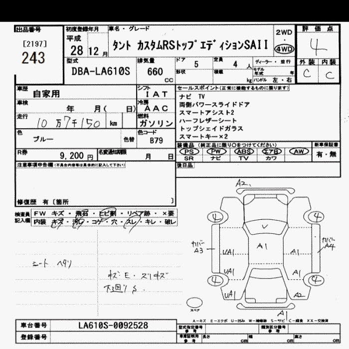 DAIHATSU TANTO 4WD CUSTOM RS TOP EDITION SAII - лот 243