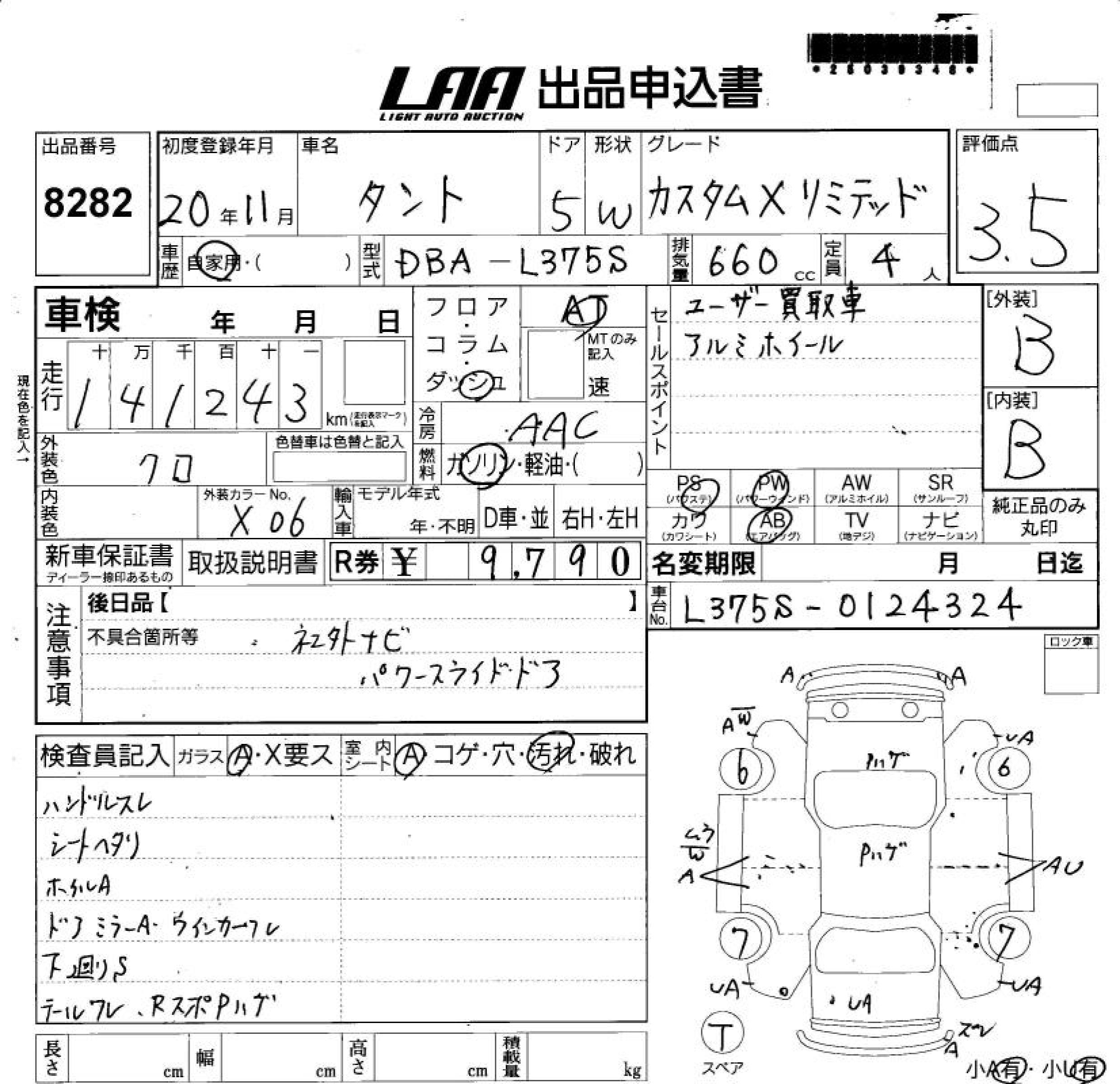 DAIHATSU TANTO CUSTOM X LIMITED - лот 8282