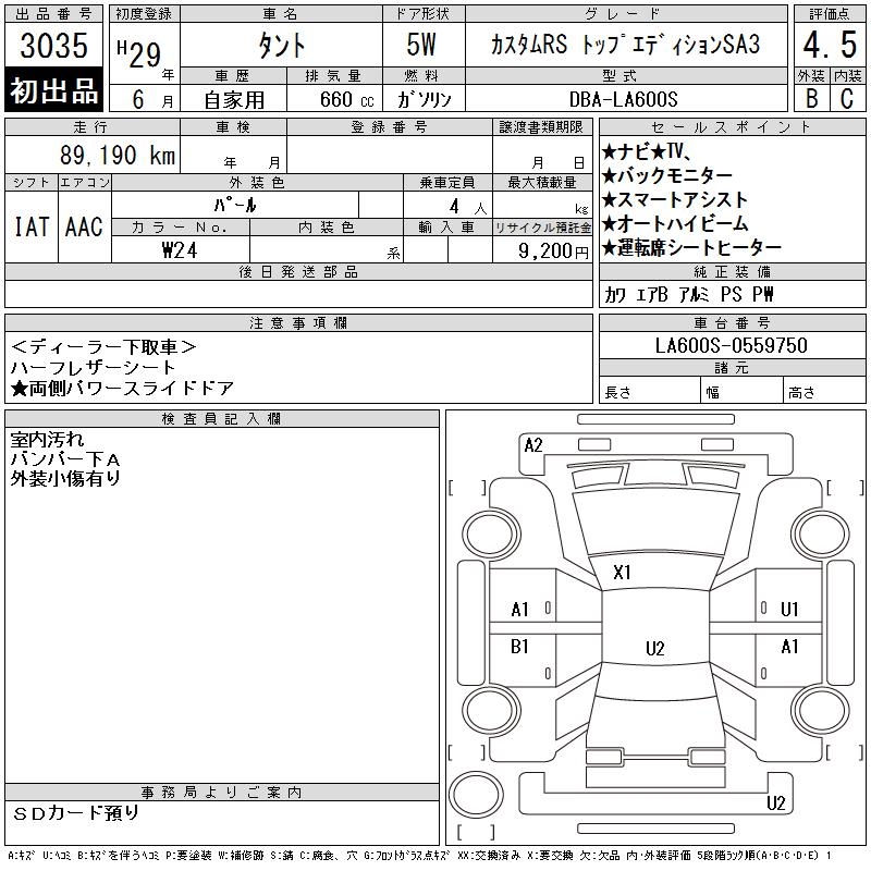DAIHATSU TANTO CUSTOM RS TOP EDITION SA3 - лот 3035