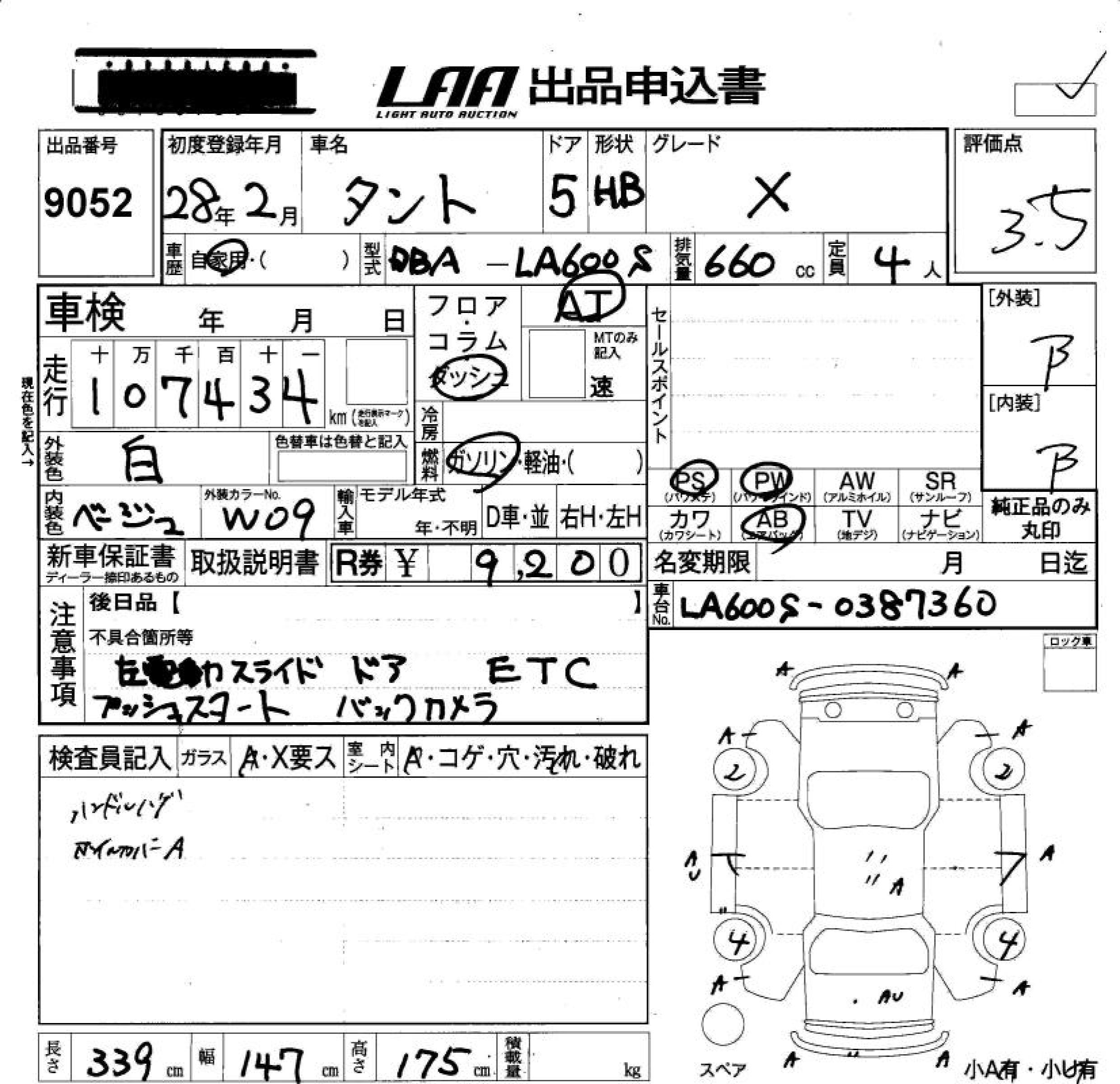 DAIHATSU TANTO X - лот 9052
