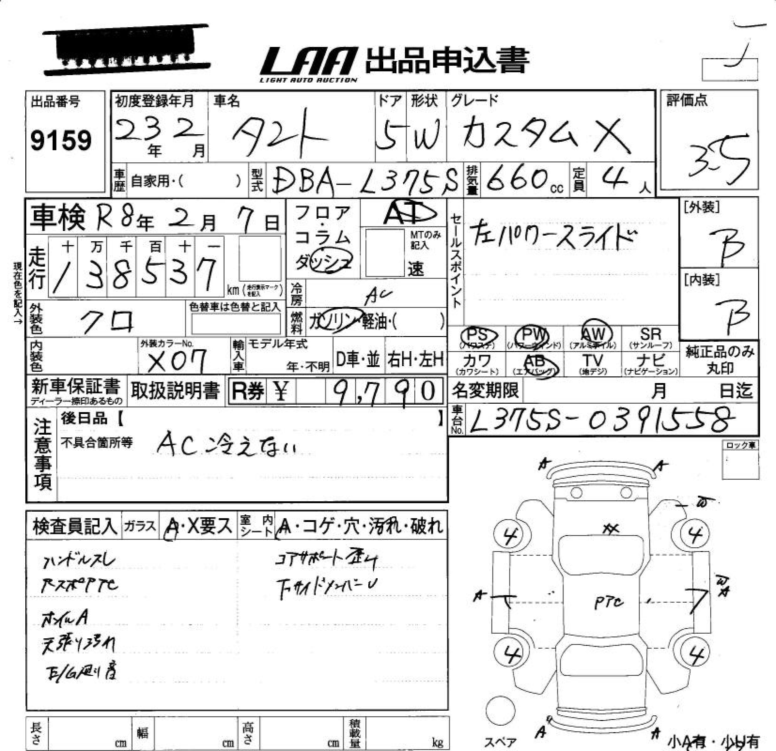 DAIHATSU TANTO CUSTOM X - лот 9159
