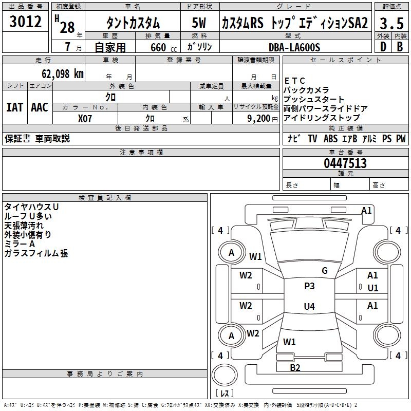 DAIHATSU TANTO CUSTOM RS TOP EDITION SA - лот 3012