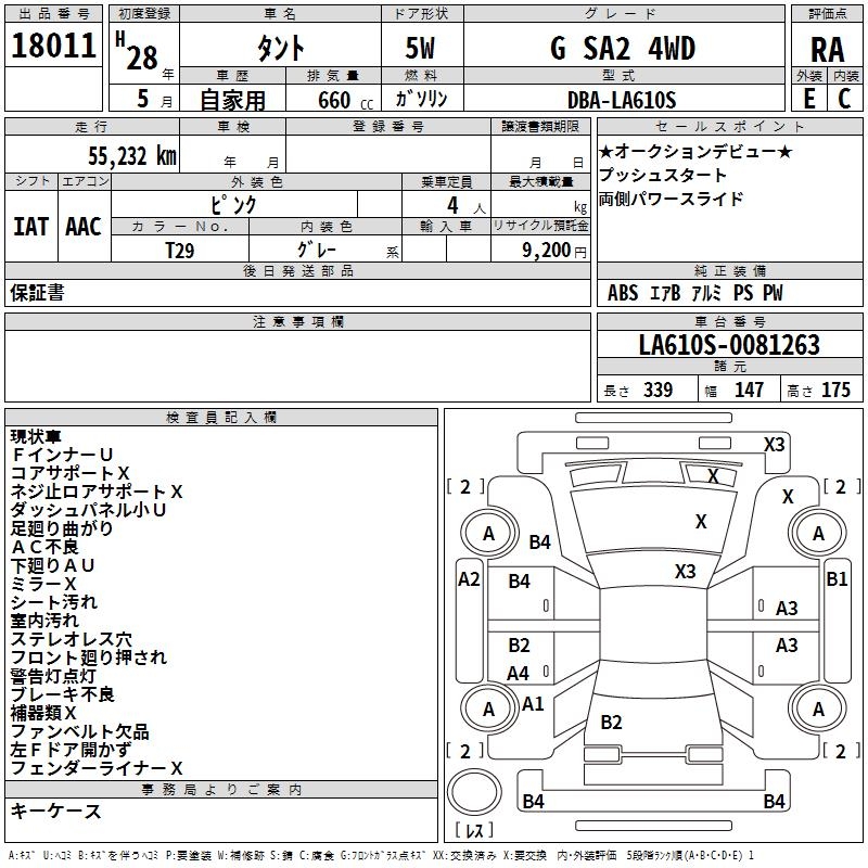 DAIHATSU TANTO G SA2 4WD - лот 18011