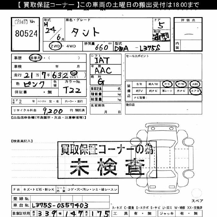 Все аукционы DAIHATSU TANTO