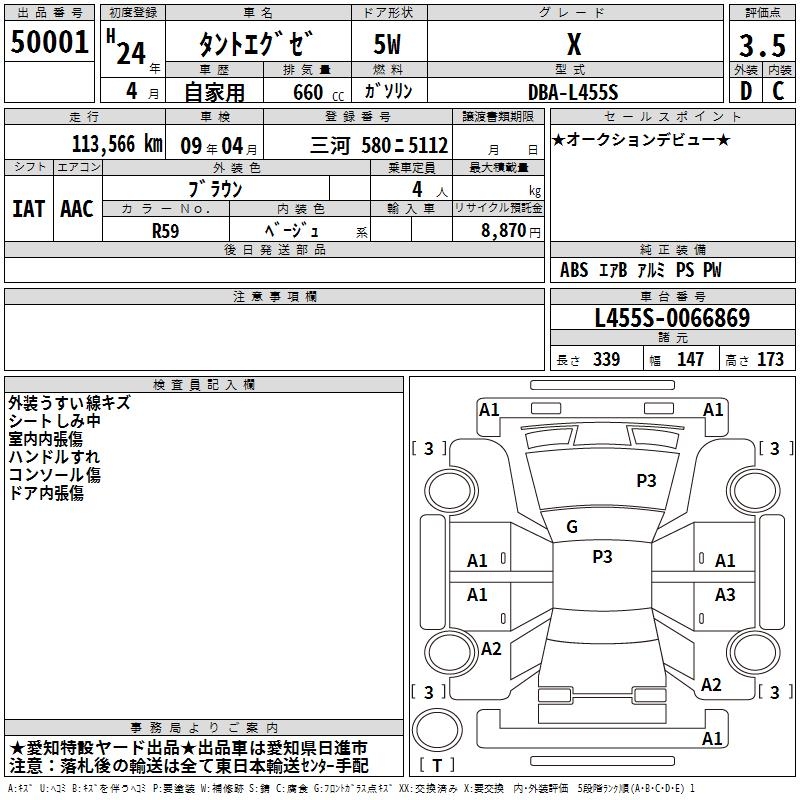 Все аукционы DAIHATSU TANTO EXE