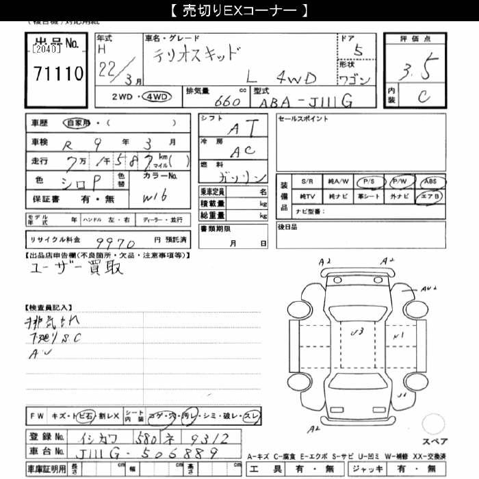 DAIHATSU TERIOS KID - лот 71110