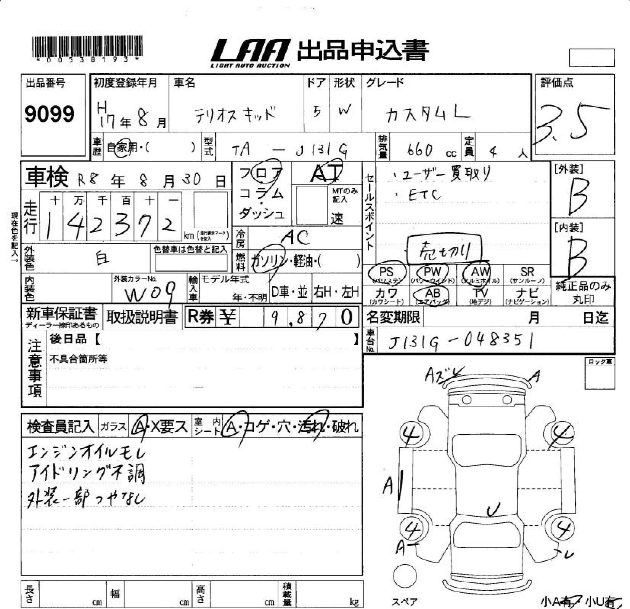 DAIHATSU TERIOS KID CUSTOM L - лот 9099