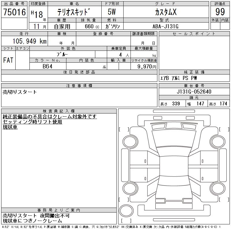 DAIHATSU TERIOS KID CUSTOM X - лот 75016