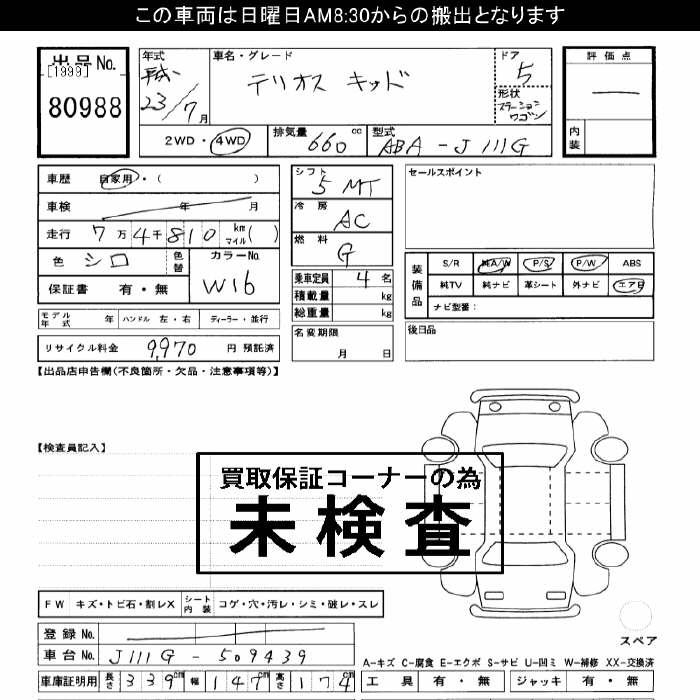 DAIHATSU TERIOS KID 4WD - лот 80988