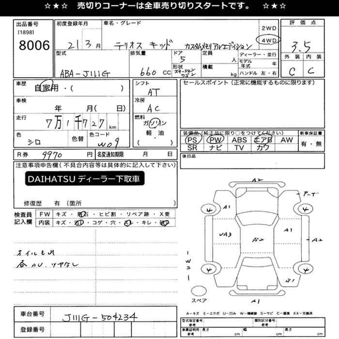 Все аукционы DAIHATSU TERIOS KID