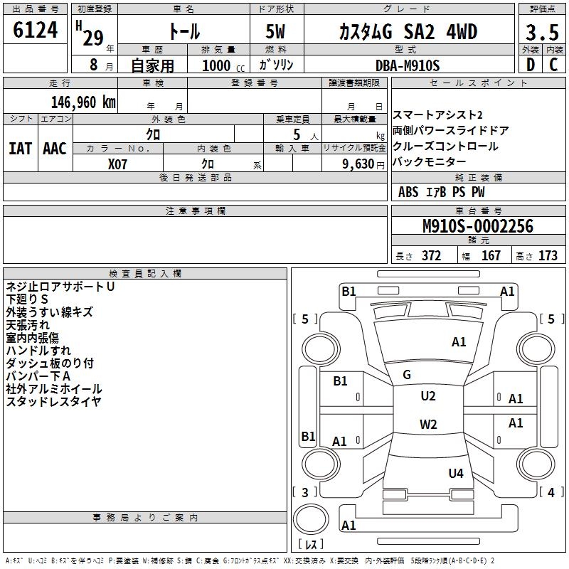 DAIHATSU THOR CUSTOM G SA2 4WD - лот 6124