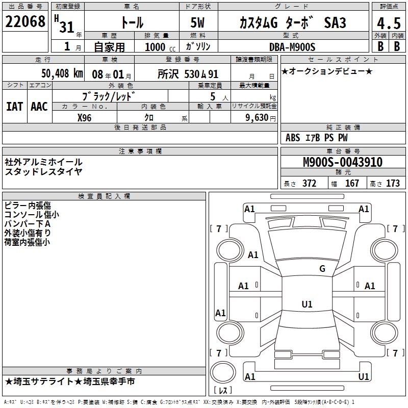 DAIHATSU THOR CUSTOM G TURBO SA3 - лот 22068