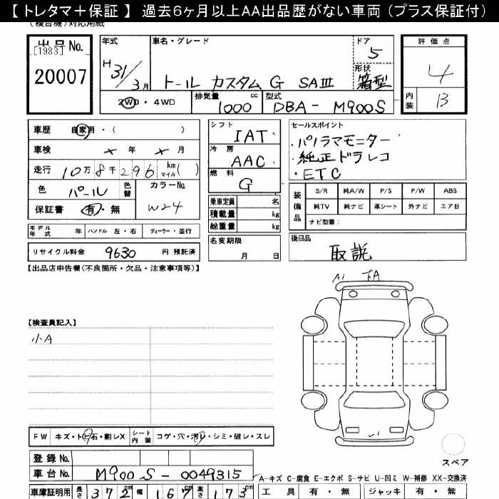 DAIHATSU THOR CUSTOM G SA3 - лот 20007