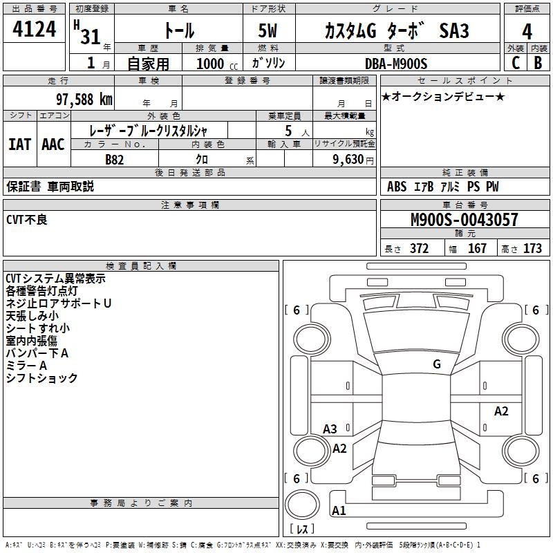 DAIHATSU THOR CUSTOM G TURBO SA3 - лот 4124