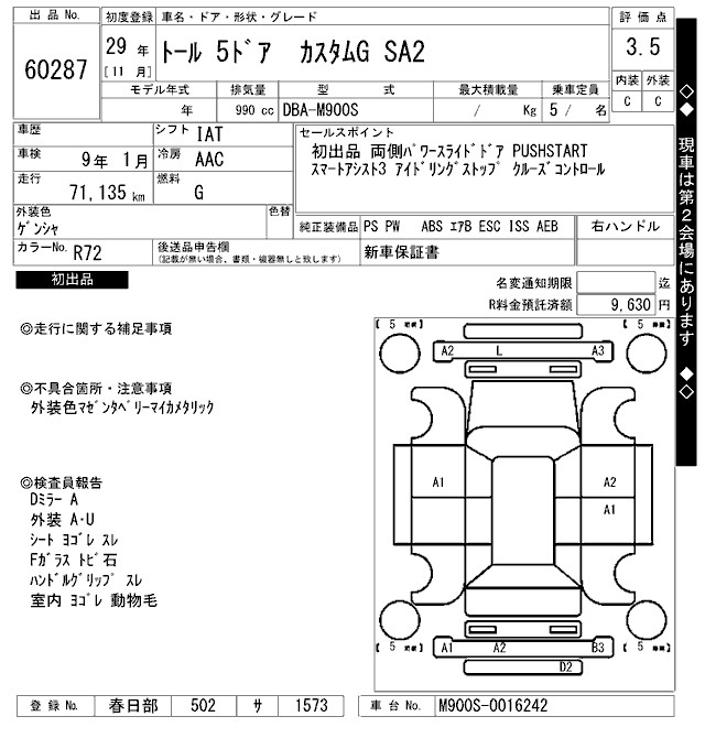 DAIHATSU THOR CUSTOM G SA2 - лот 60287