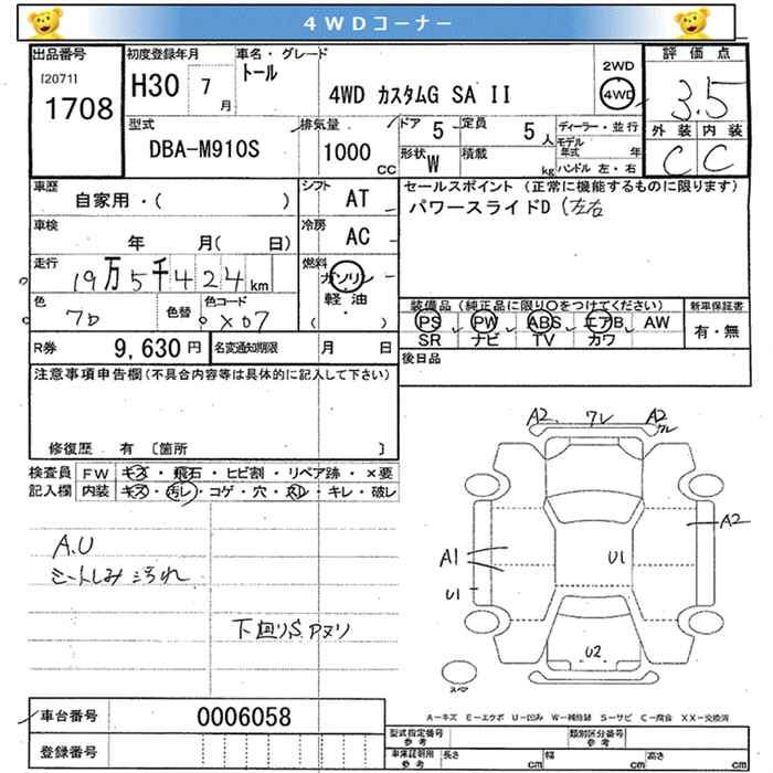 DAIHATSU THOR 4WD CUSTOM G SA II - лот 1708