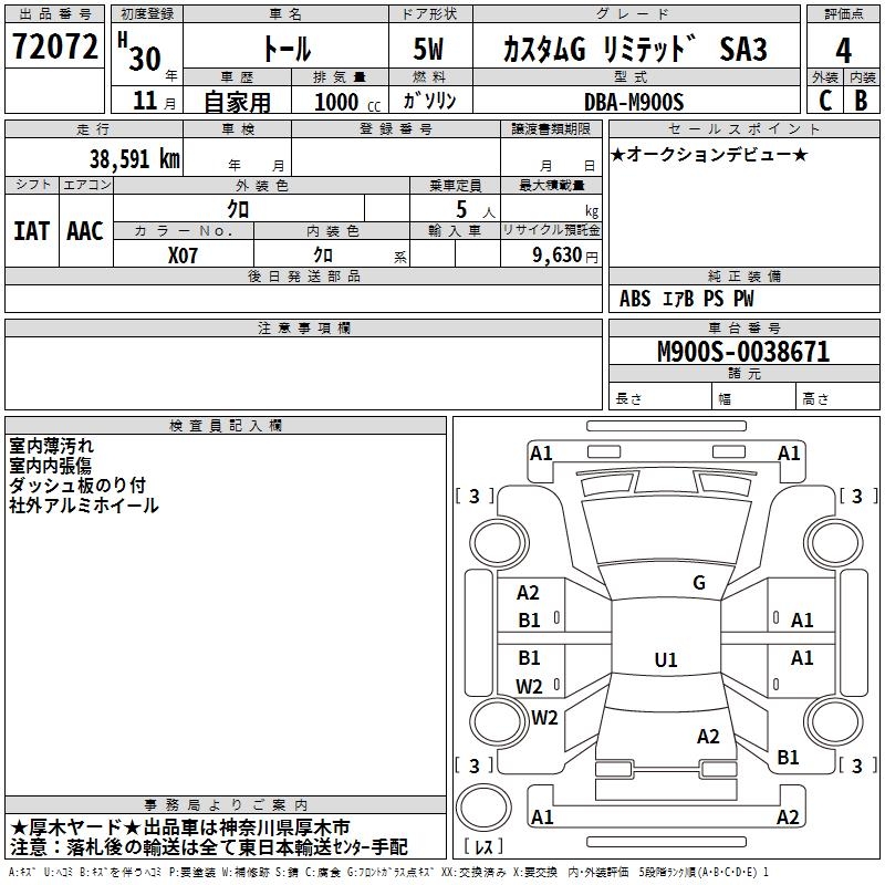 DAIHATSU THOR CUSTOM G LIMITED SA3 - лот 72072