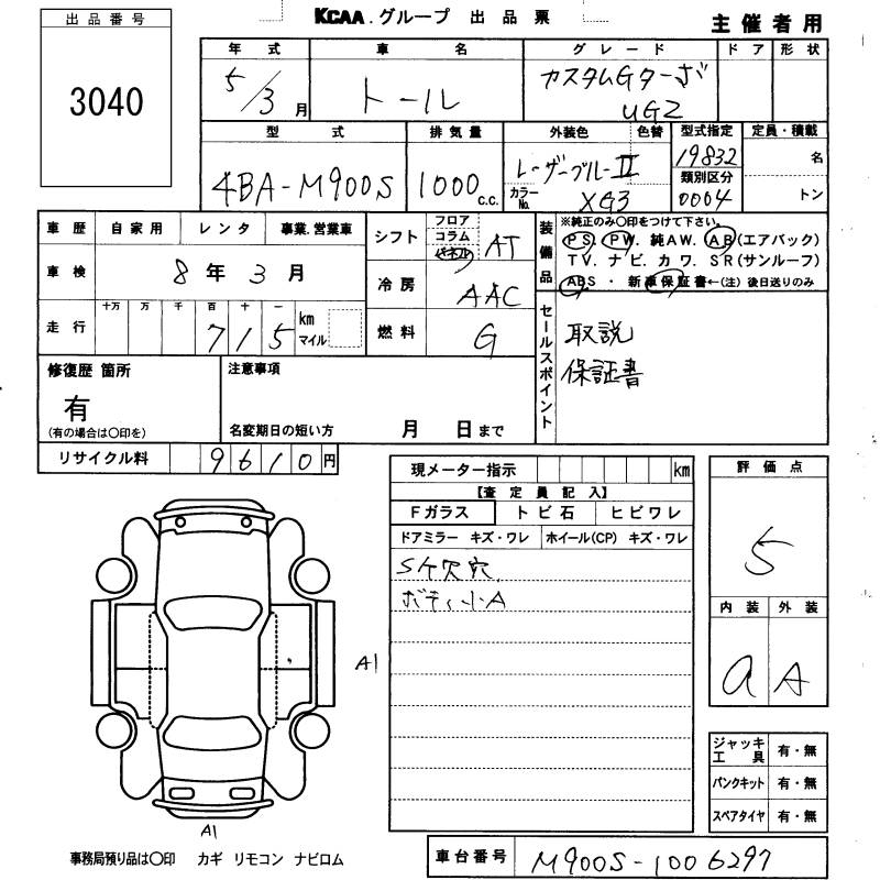 DAIHATSU THOR CUSTOM G TURBO UG2 - лот 3040