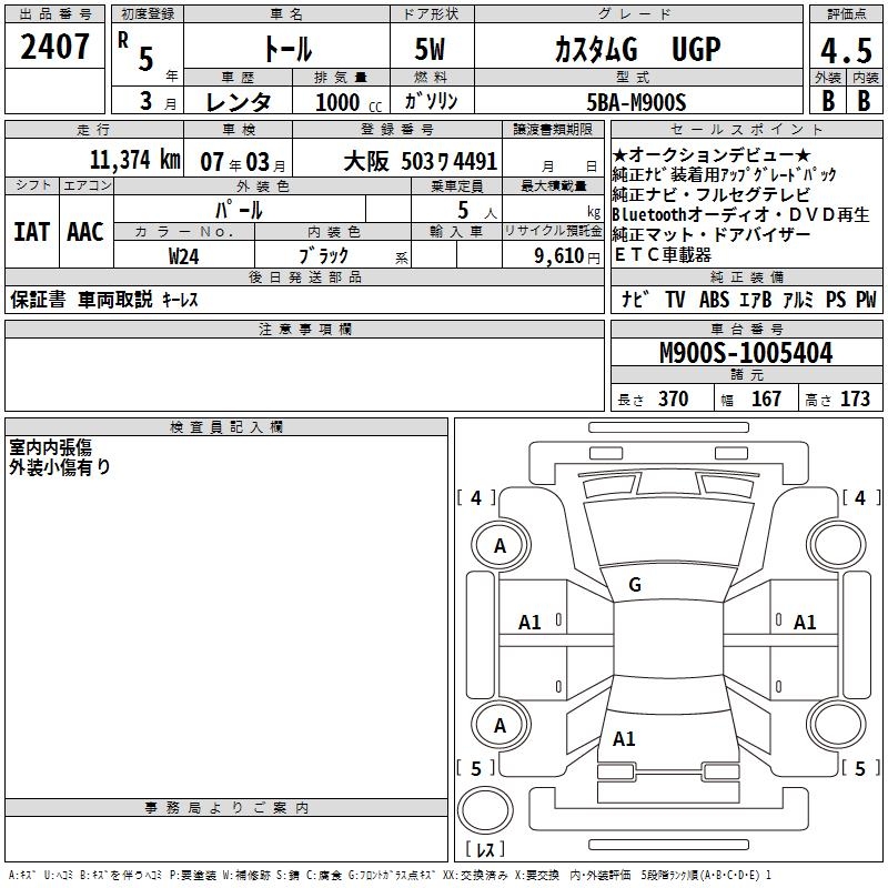 DAIHATSU THOR custom G UGP - лот 2407