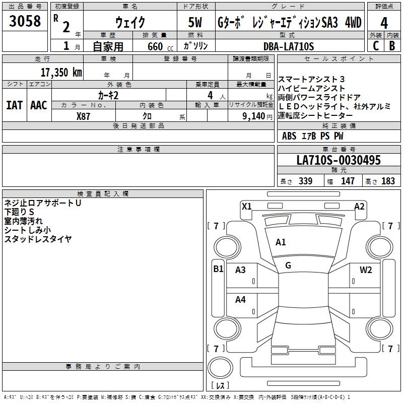 DAIHATSU WAKE G TURBO LEISURE EDITION 4WD - лот 3058