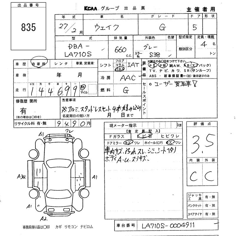 DAIHATSU WAKE G - лот 835