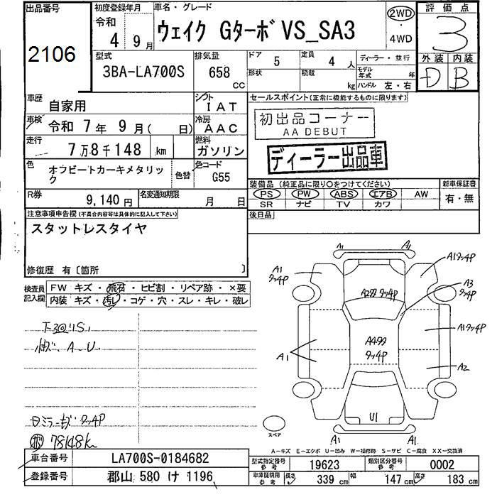 DAIHATSU WAKE G TURBO VS SA III - лот 2106