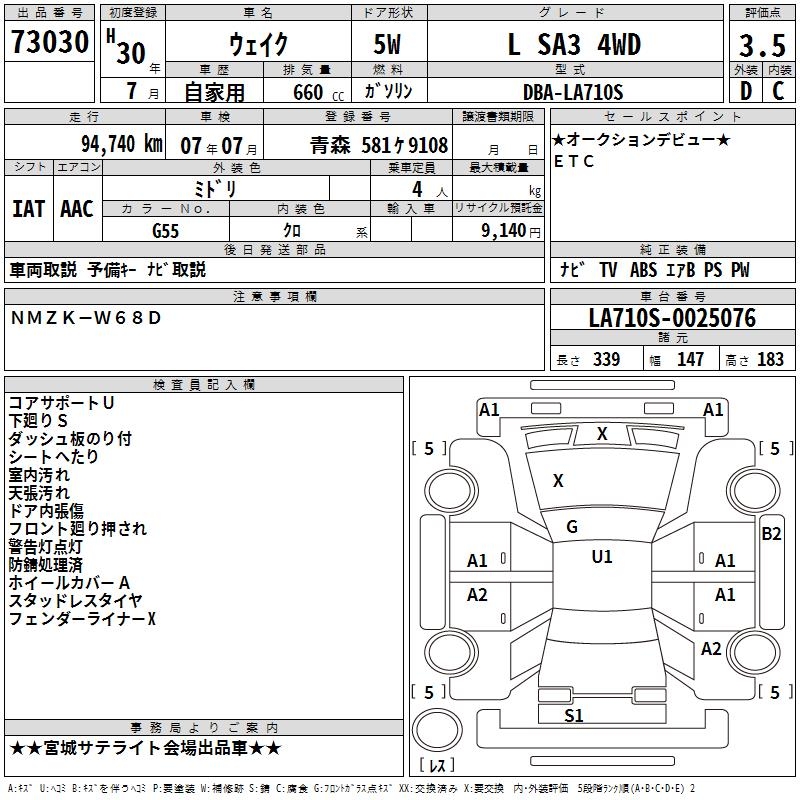 DAIHATSU WAKE L SA3 4WD - лот 73030
