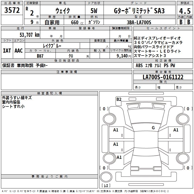 DAIHATSU WAKE G TURBO LIMITED SA3 - лот 3572