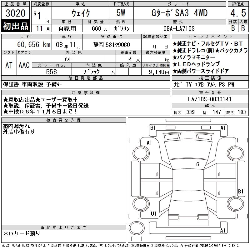 DAIHATSU WAKE G TURBO SA3 4WD - лот 3020