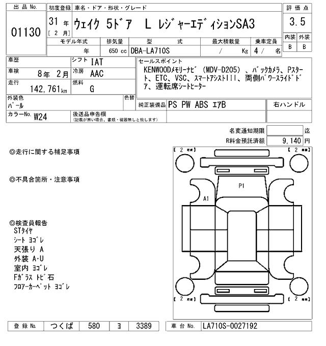 DAIHATSU WAKE L LEISURE EDITION SA3 - лот 1130