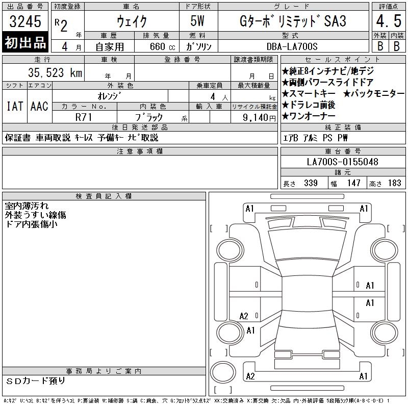 DAIHATSU WAKE G TURBO LIMITED SA3 - лот 3245