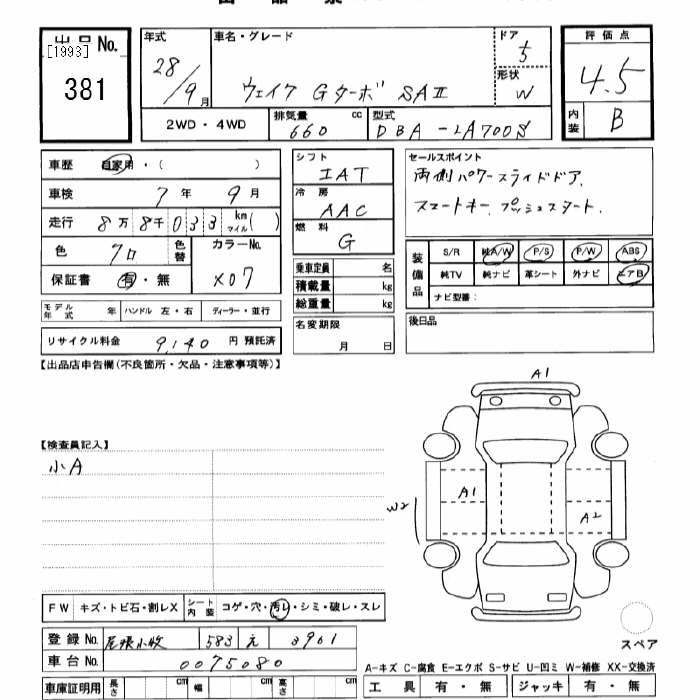 DAIHATSU WAKE G TURBO SA2 - лот 381