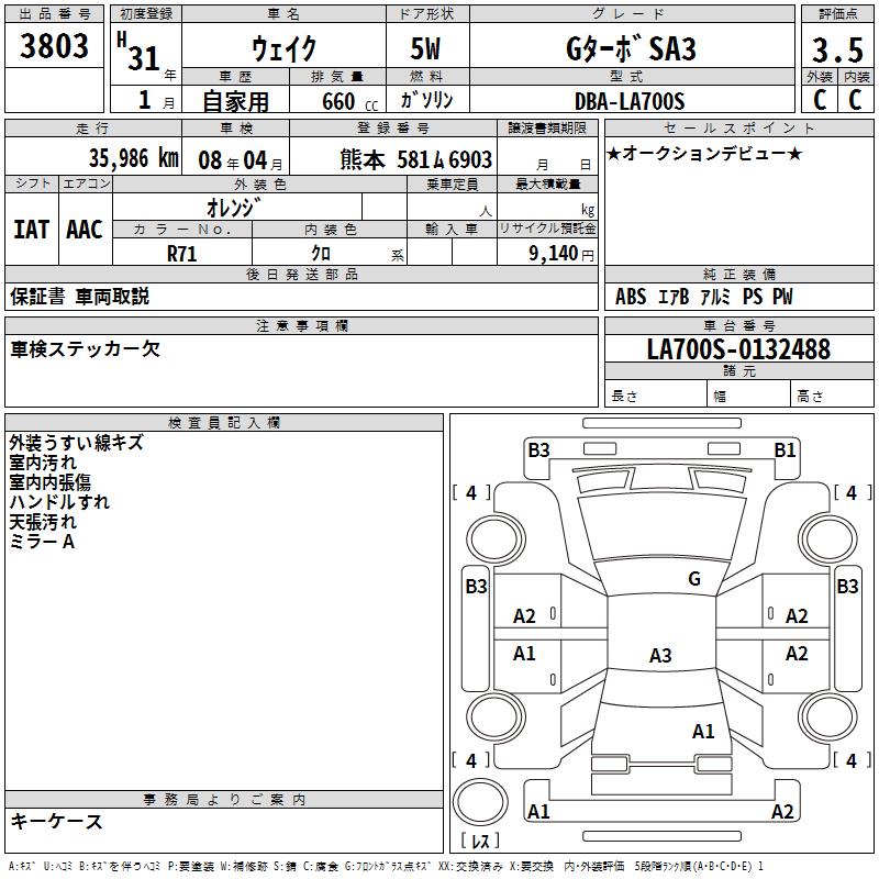 DAIHATSU WAKE G TURBO SA3 - лот 3803