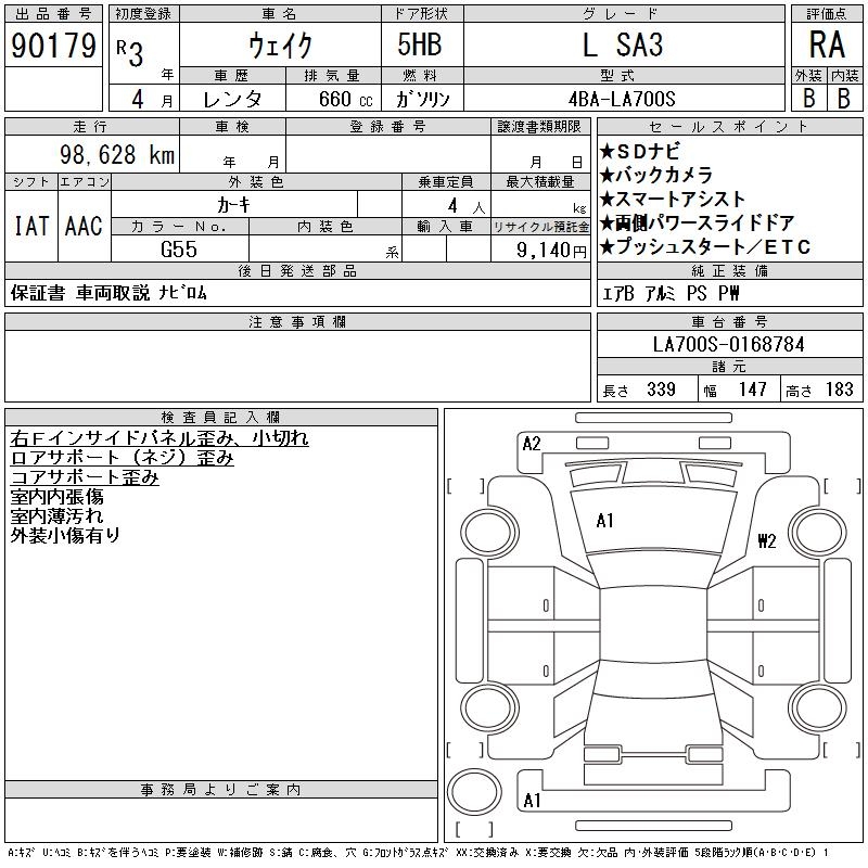 DAIHATSU WAKE L SA3 - лот 90179