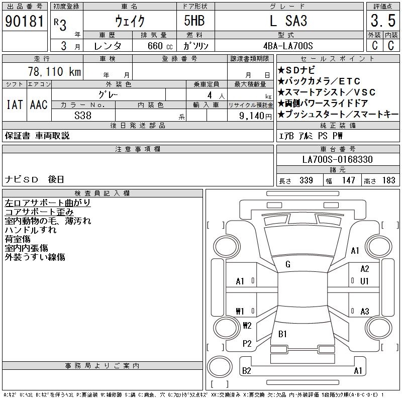 DAIHATSU WAKE L SA3 - лот 90181